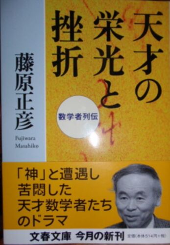 わくわく亭はもとより文科系ですから、数学の本は苦手でよみません。しかし数学者の、しかも天才数学者について書かれたものは、結構好きで読みます。 この『天才の栄光と挫折』の作者藤原正彦さんは、あのベストセラー『国家の格』の作者であり、本業は 数…