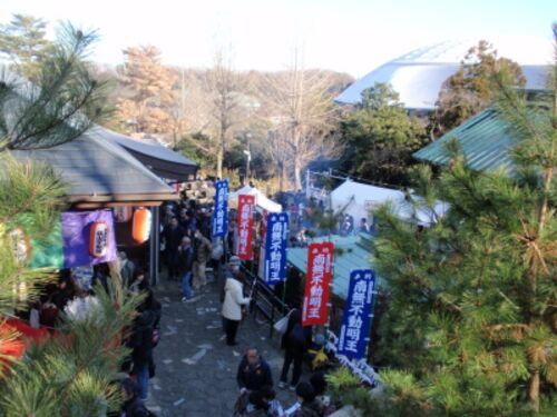 毎年初詣には西武ライオンズ球場前にある狭山不動へ行く。 狭山不動のとなりの山口観音にも例年のごとく詣る。 門前の屋台店で甘酒を飲み、大タコ焼き、やきそばを寒さに震えながら食べて、 丹波の焼き栗をみやげに買って帰る。 寒気は厳しいが、快晴のすが…